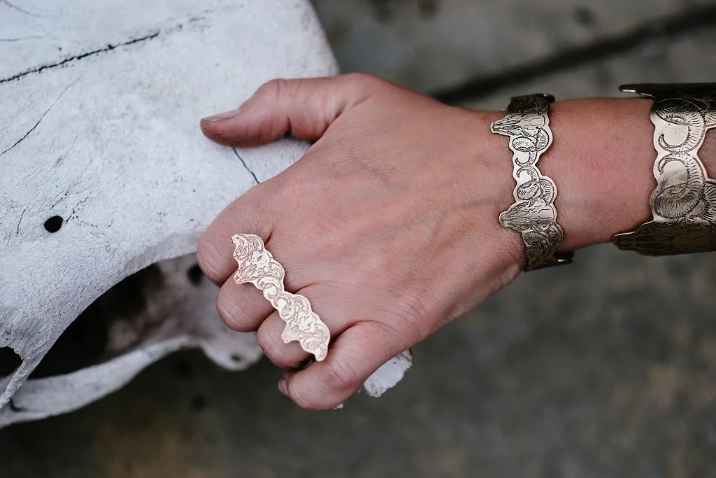 My art jewelry is an exploration of the dynamic interplay between natural processes and human interaction with the environment. Influenced by the geometric patterns shaped by erosion, as well as the fluidity of the water cycle, my work draws inspiration from the Native American silver, turquoise, and fetish jewelry collection of my grandmother, her teachings of vintage wear, and all the culture and natural beauty encountered on my travels.